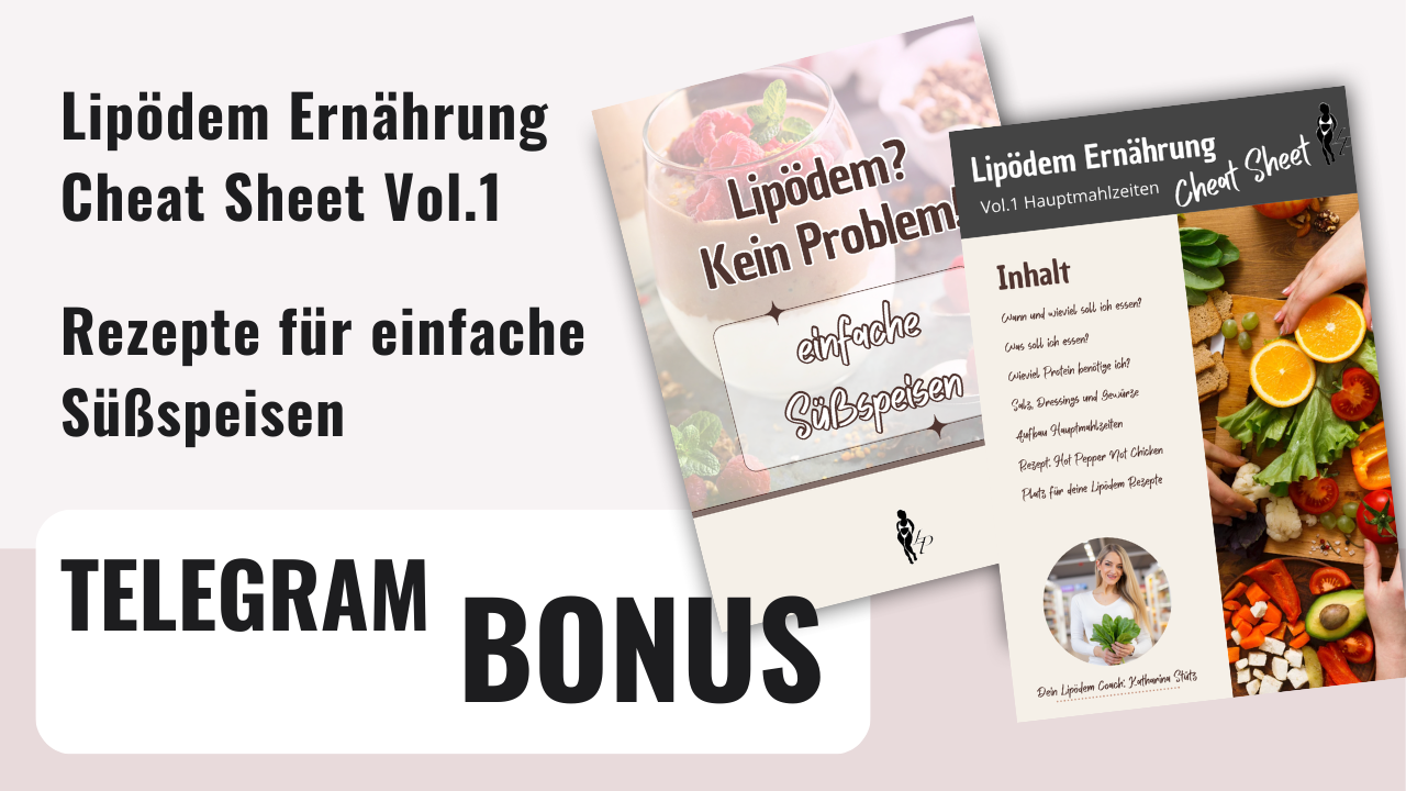 Damit du sofort anfangen kannst deine LipÜdem Ernährung anzupassen. Ohne verzichten zu mßssen.